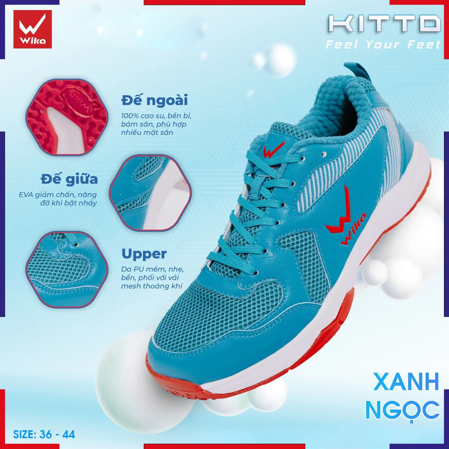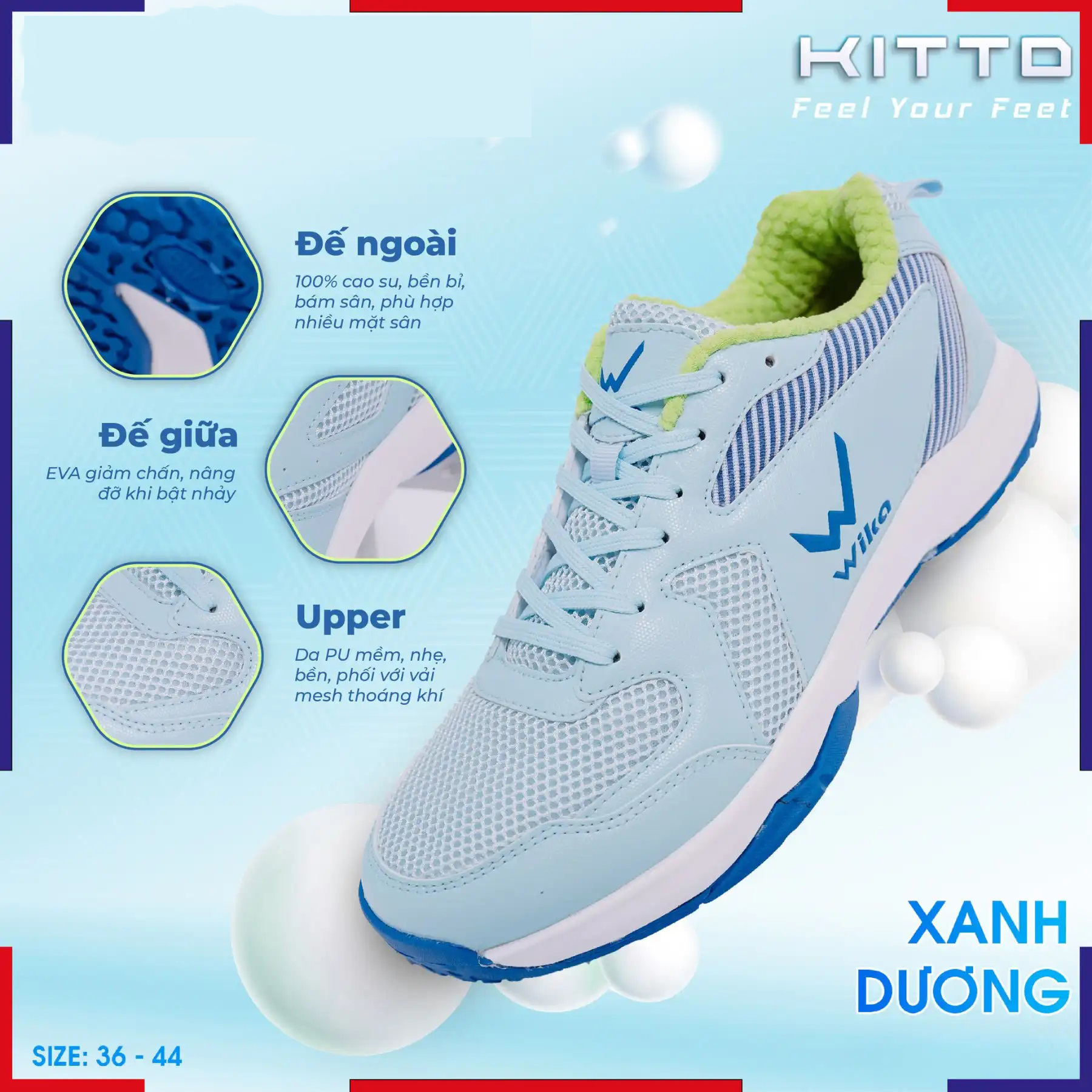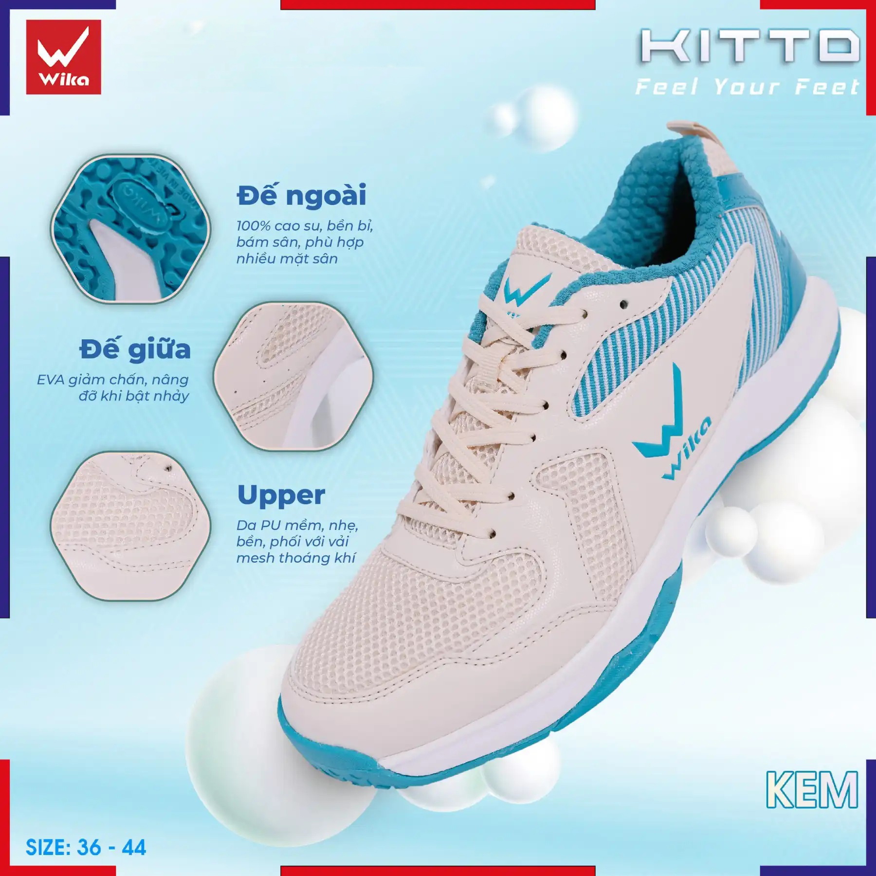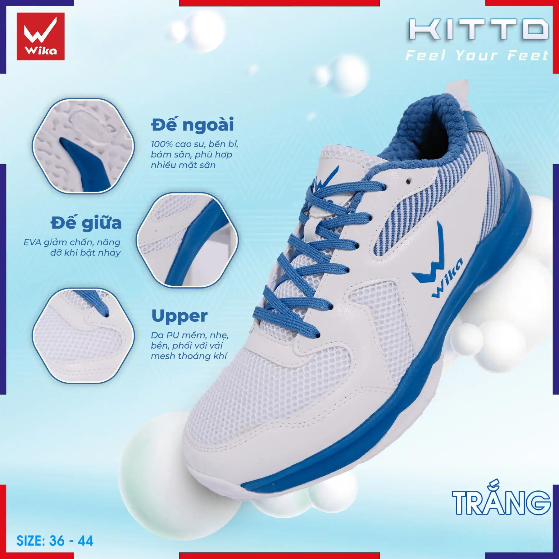Wika Kitto sở hữu thiết kế khỏe khoắn, năng động với form giày ôm chân, giúp tôn dáng và tạo cảm giác gọn gàng khi di chuyển.